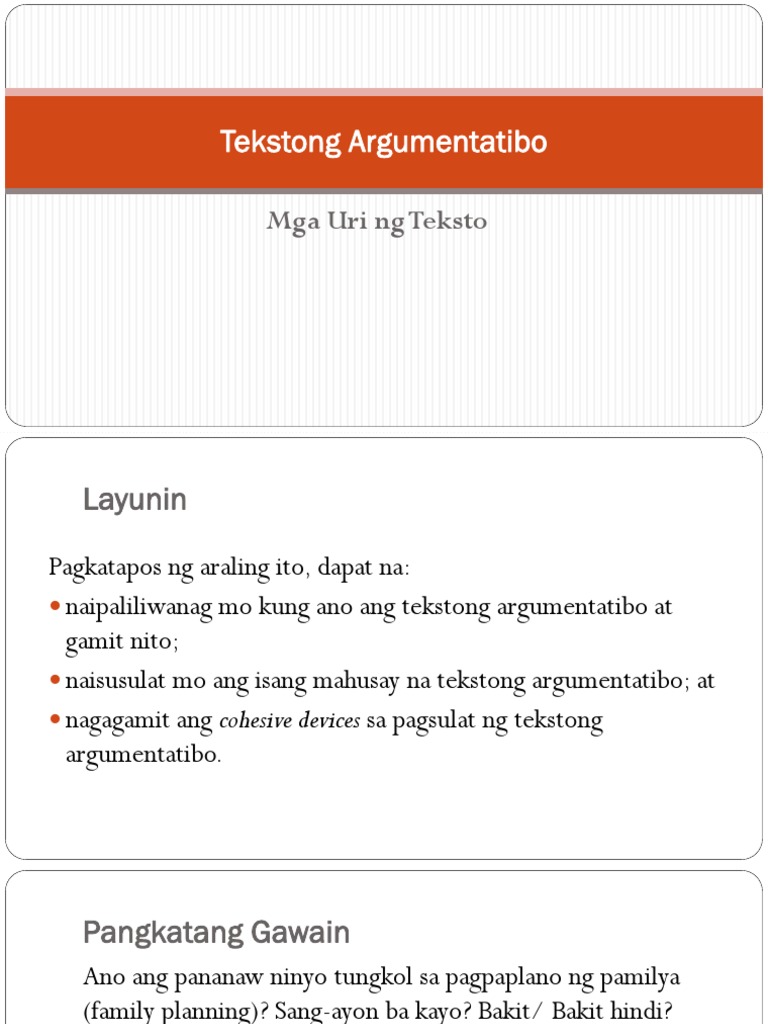 Ang Tekstong Argumentatibo Ay Naglalahad Ng Paniniwala