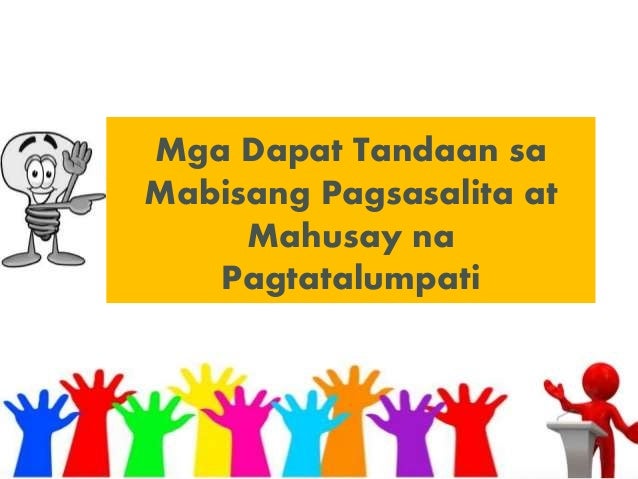 Mga tauhan sa suliraning nararanasan. Ang talumpati ay isang buod o kaisipan o opinyon ng isang tao na ibinabahagi sa pamamagitan ng pagsasalita sa isang entbalado. 1122019 katawan - nakasaad dito ang paksang tatalakayin ng mananalumpati.