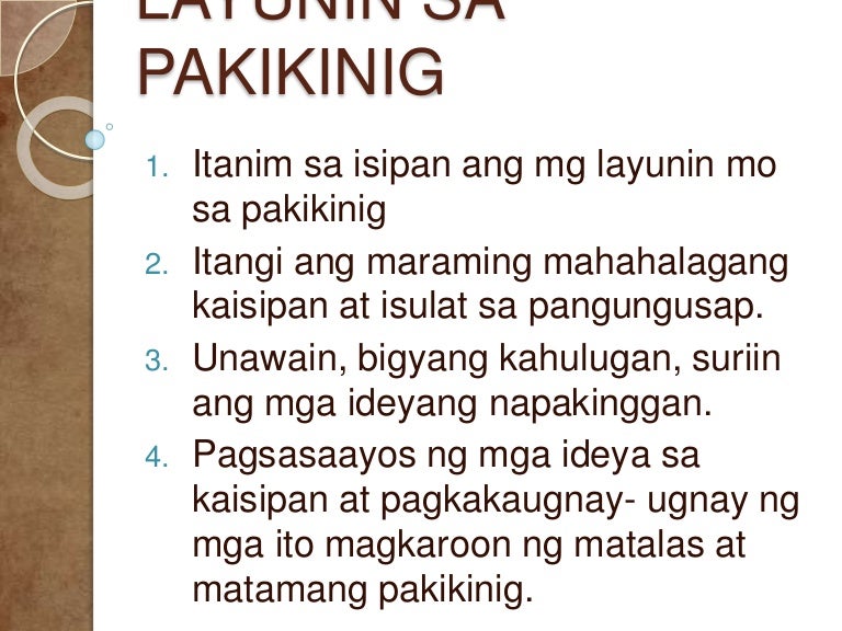 Layunin Sa Pagtuturo Ng Pakikinig Ppt
