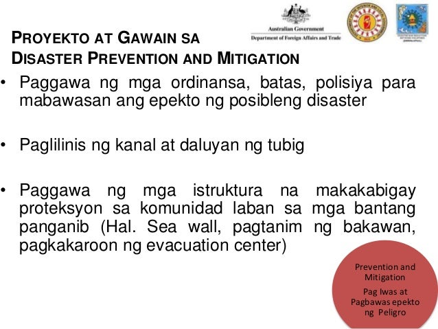 A documentation on the formulation of disaster risk reduction management plans of the 16 high risk barangays of the municipality of Jagna. Gumamit ng mga salita at termino na hindi gaanong maunawaan ng mga mamamayan. Disaster Prevention and Mitigation.