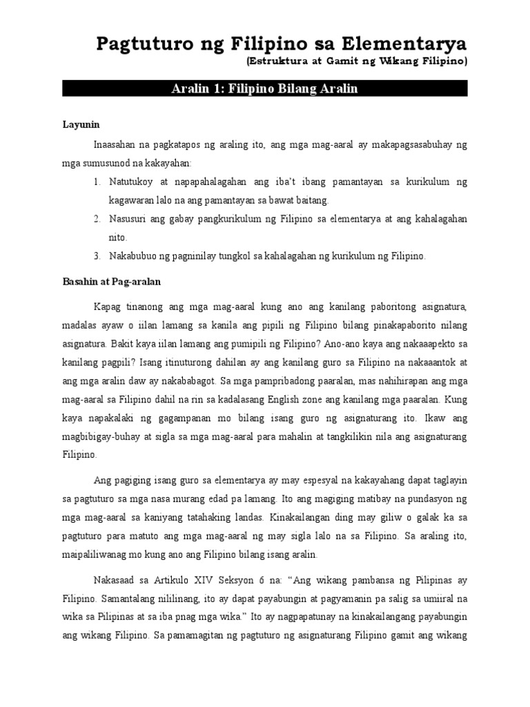 Mga Layunin Sa Pagtuturo Ng Asignaturang Filipino