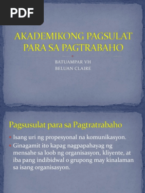 Akademikong Pagsulat Para Sa Pagtrabaho