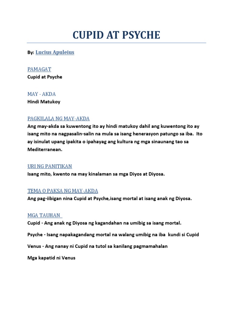 Suring Basa para sa Cupid at Psyche GRADE 10 1. Cupid at Psyche - the answers to 1 Qualitt. Dito makikita natin ang mga pangunahing tauhan na sina cupid at psyche.
